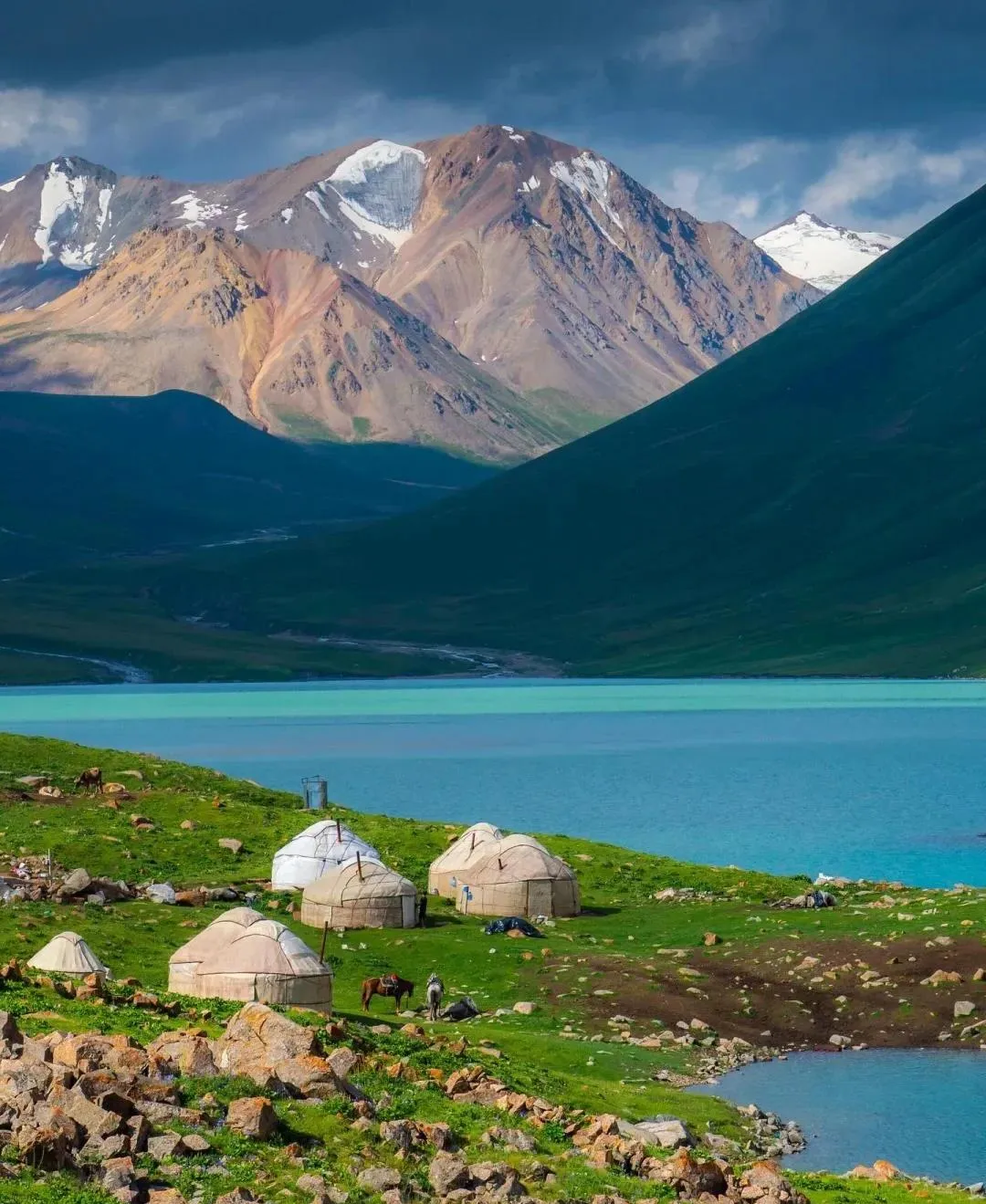 冬季结冰,春夏季呈现奶绿色,只有9-10月会忽然变成耀眼的绿松石般的颜色。