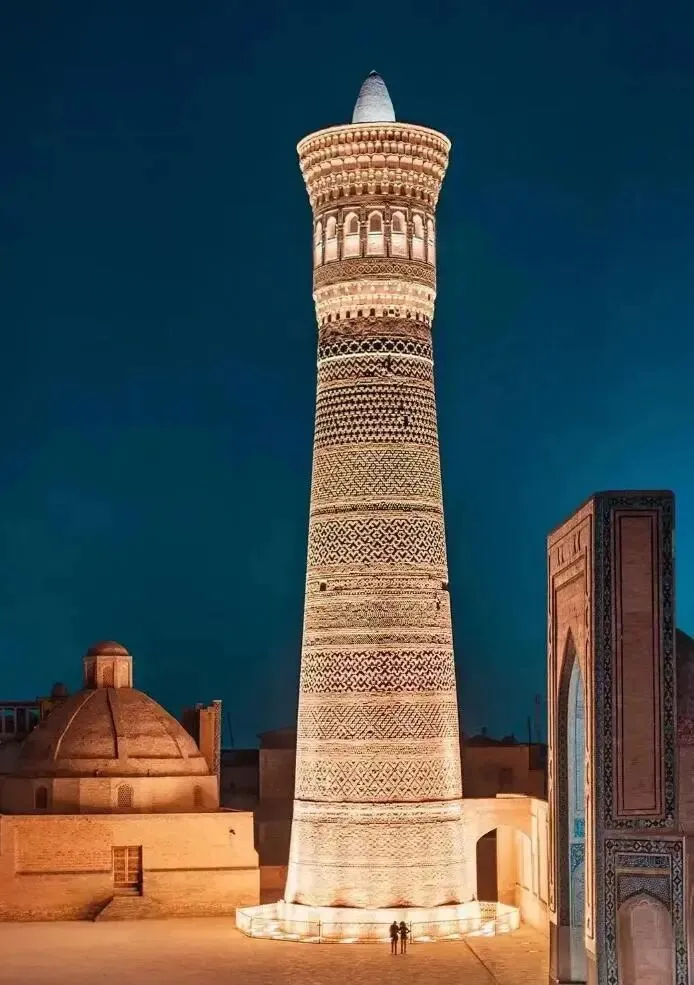 卡扬宣理塔:此塔建于内地的北宋年间,建成的时候成为布哈拉最高的建筑,一到布拉哈远远地就能看到卡扬宣理塔。塔身螺旋结构实现声波定向传播,塔身的14个装饰带与46.5米的高度达成声场聚焦,令其声波效率较传统设计提升42%,是凝固在砖石间的信仰召唤。
