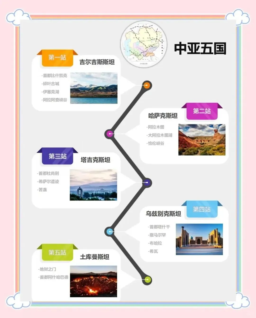 五个明珠般耀眼的国家在丝绸古道上绽放着独特的光芒