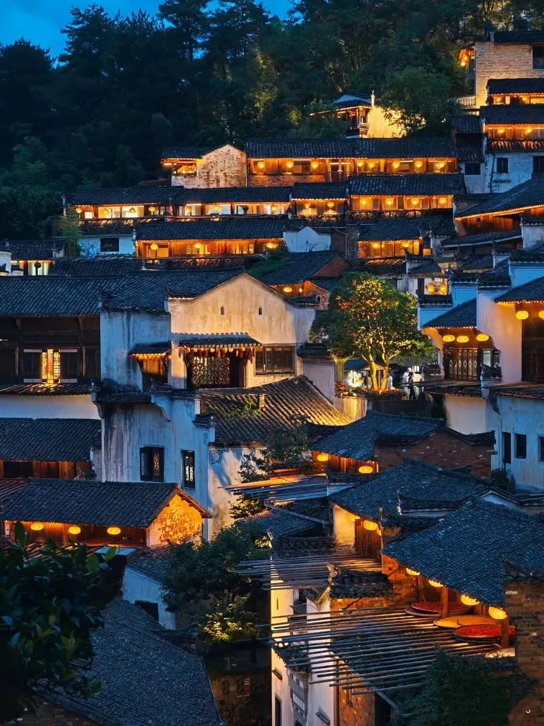 4、观景台: 俯瞰整个西递村落全景的绝佳位置。 建议傍晚时分前往,可以捕捉到日落时分的绝美村落剪影。5、“拐弯抹角”绣楼: 一个充满生活智慧的细节。古徽州人讲究邻里和睦,“中间让的是三分和气”,这个独特的转角设计体现了当地人的格局。6、西递的夜晚别有洞天,灯光秀和民俗活动让古村焕发出不一样的魅力,是必体验的精华部分。