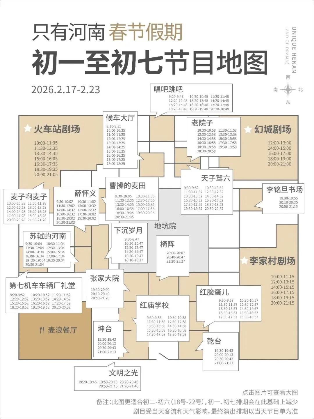 新春的只有河南,是戏剧的世界,也是年味的海洋,想入园的话,门票可得提前预定,园区按主剧承载量限流,错峰前往的体验会好上不少,腊月二十八、除夕、初一、初七这几天,真是不错的选择。