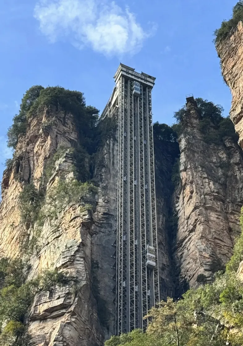 【百龙天梯】世界第一梯!垂直高差335米,一分钟直达山顶,体验惊险刺激的垂直观光之旅(费用已含)!