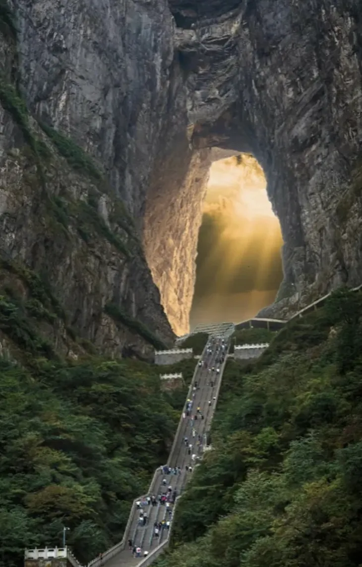 【天门洞开】攀登999级天梯,登上罕见的高海拔穿山溶洞,祈福平安。天门洞如神话般矗立,震撼人心!