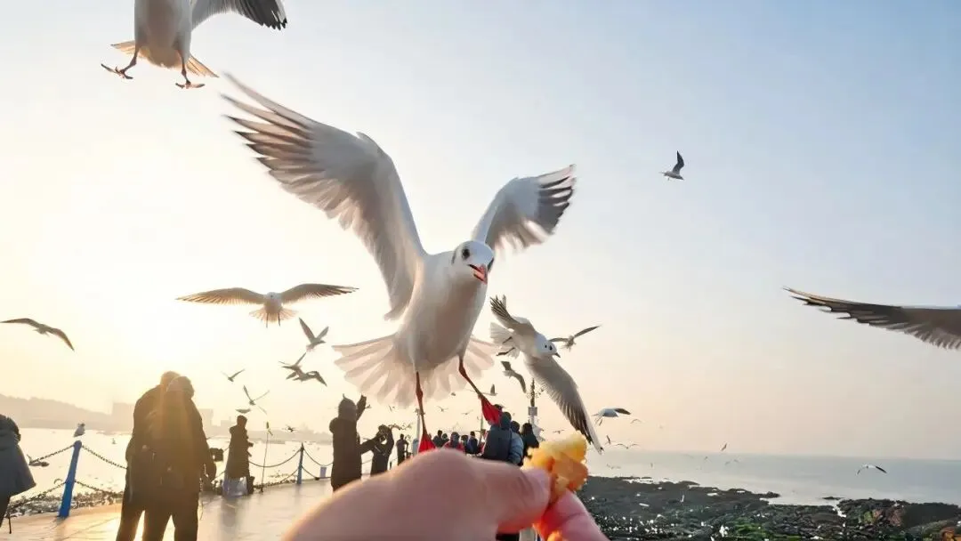 海鸥观赏:栈桥喂海鸥最佳时间为11月至次年4月
