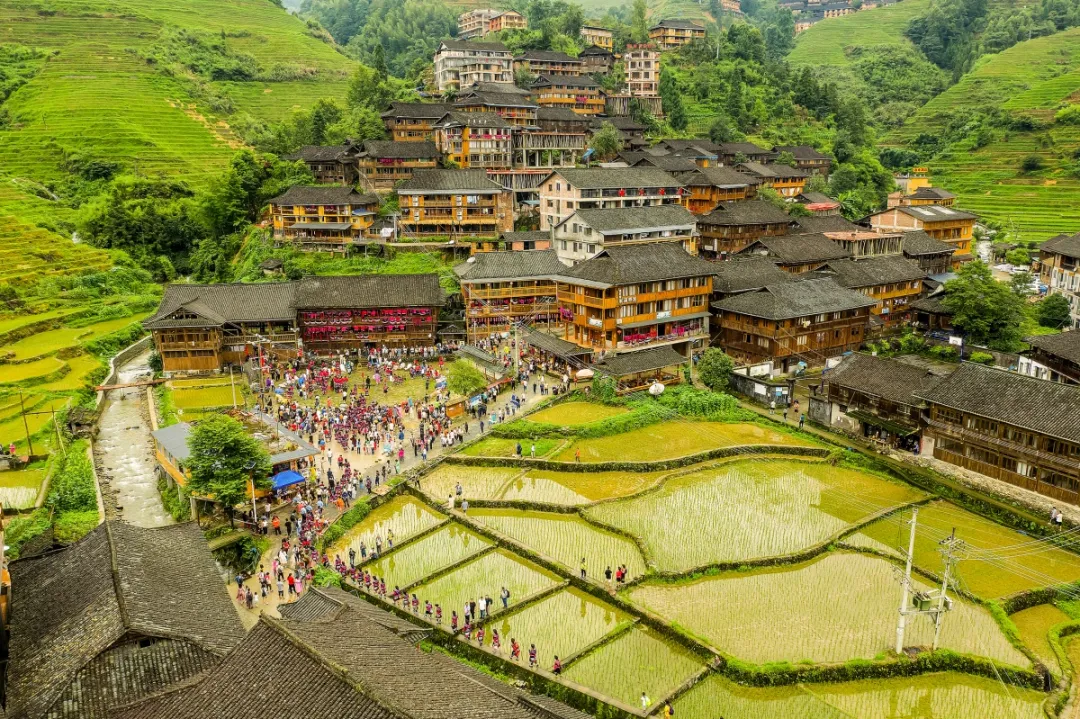 大寨村是龙脊梯田核心景观区所在地,被誉为“世界梯田原乡”。村子倡导“种田就是种风景”理念,有机结合文化遗产保护与农业生产,将当地具有2300年历史的梯田农耕系统和红瑶民族文化转化为旅游景观,再将乡村旅游收入用于古建筑的保护、梯田景观修复与自然生态保护,实现了农业生产与旅游开发同步可持续发展。