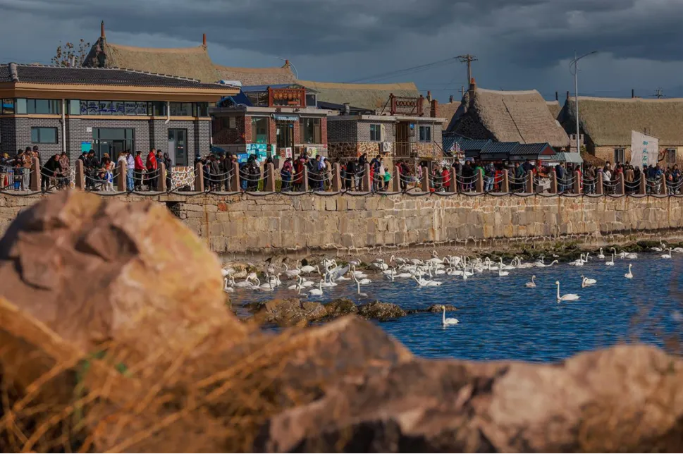 烟墩角村始是亚洲最大的天鹅越冬栖息地,还有被称为“活的中国生态建筑标本”的沿海传统民居海草房。村内通过活化利用的方式对海草房等传统建筑进行修缮保护及民宿改造,同时以“传统村落+天鹅渔村”为主题,打造集天鹅旅游、民宿写生、海洋牧场于一体的特色渔村,每年吸引10万余人次游客来此观光,实现了生态保护与村民致富的互促共赢。