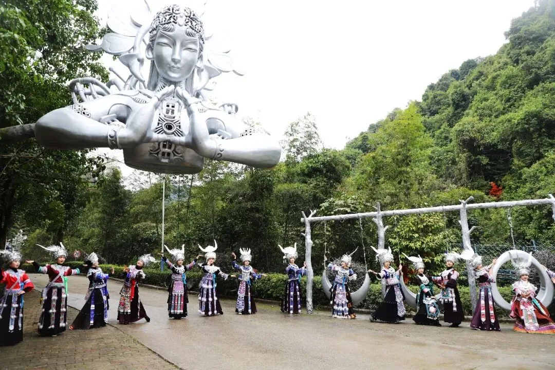 走进景区的银饰展示中心,各式苗族银饰摆放整齐,熠熠生辉。景区新增的“银饰女神佩响”“银饰风雨桥鼎响”“银饰石头耶响”等特色景观,将银饰工艺之美与山水生态之美巧妙融合,与自然景致相映成趣,成为别具一格的文旅打卡点。