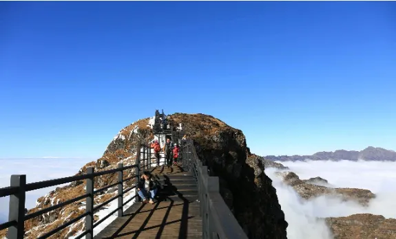 轿子山又称轿子雪山,位于昆明市北部的东川区与禄劝县交界处,素有“滇中第一山”“滇中第一名山”之称。主峰海拔约4223米。轿子雪山呈现出“一山分四季,四时景迥异”的独特自然景观,还形成了由奇峰、秀水、冰雪、鹃、云海、日出、佛光组成的“七绝”。