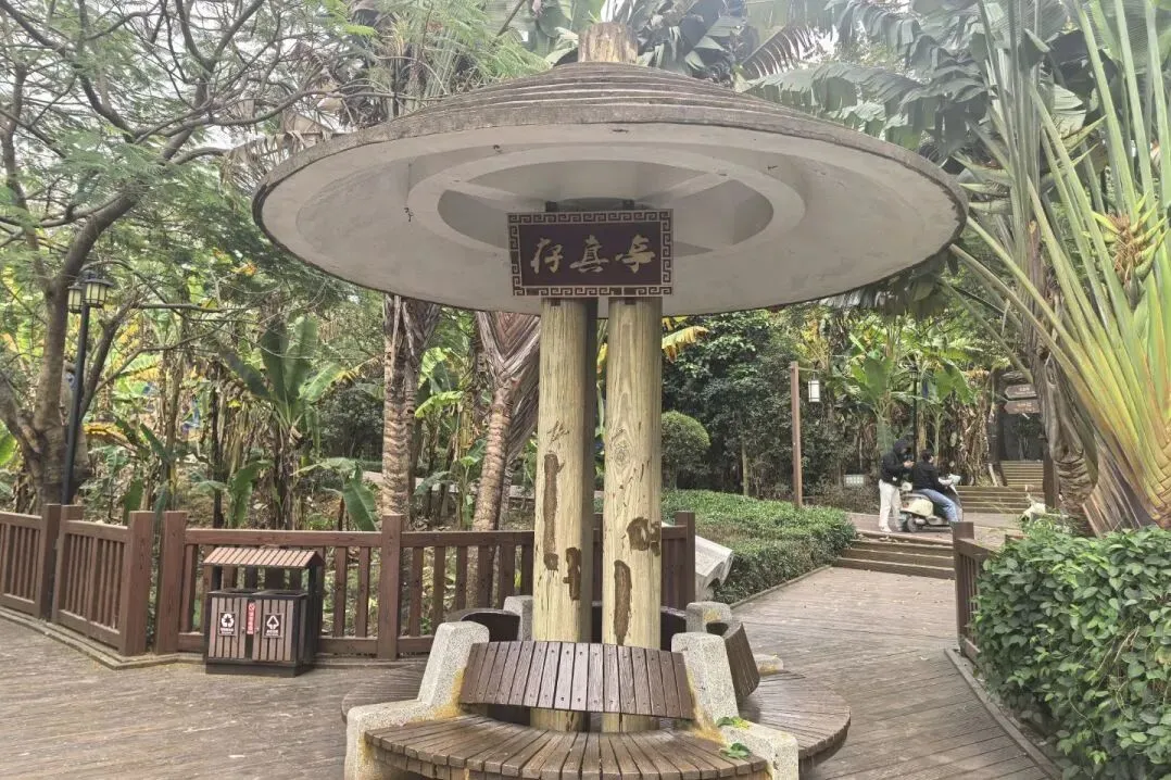 穿过层层蕉林,“乐享亭”豁然映入眼帘,简约雅致的设计,搭配开阔通透的视野,让这里成为游人相聚的优选之地。三两好友并肩而坐,闲话家常,畅谈趣事,或是静静相伴,不言不语,皆是人间清欢。