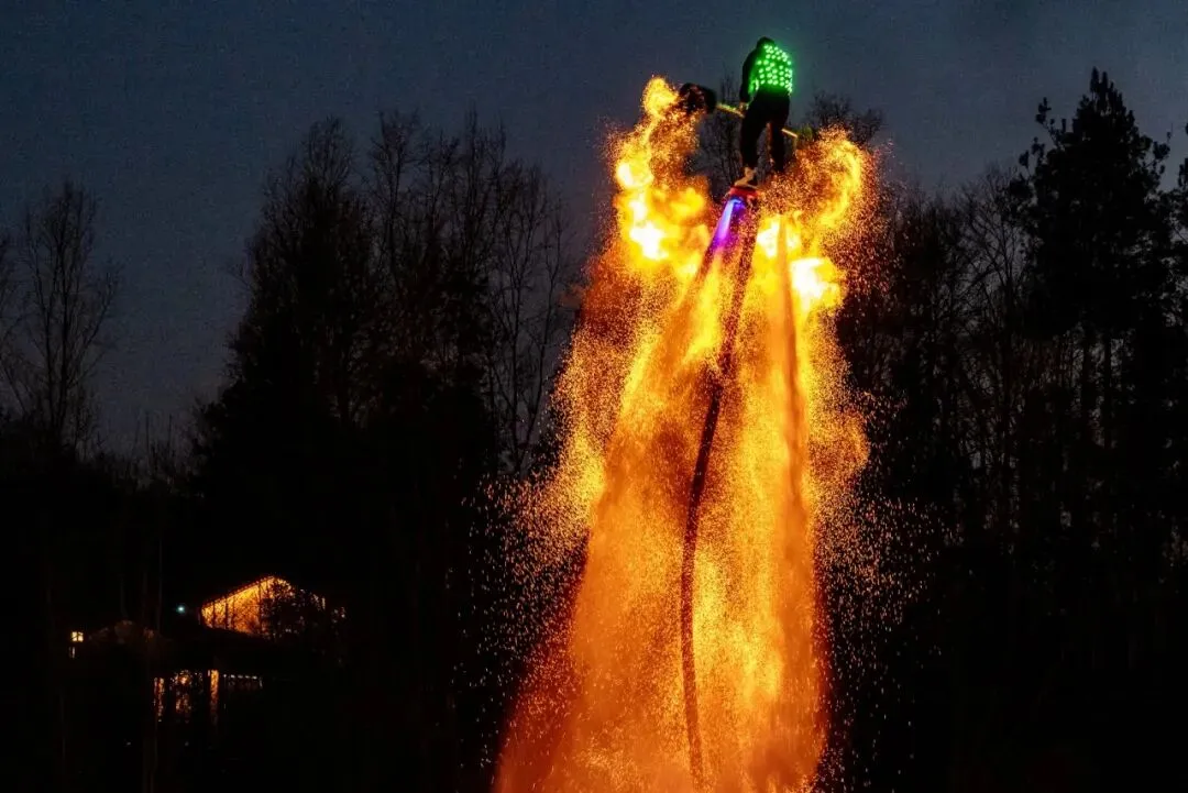 当暮色四合时,重头戏“龙船水乡千灯会”开始,在亮灯仪式后,水上飞人火壶、烟花瀑布、舞狮、杂技等表演让人目不暇接。随着匠人们用力击打,国家级非遗“打铁花”如星河倾泻,炽热铁水泼洒成金色花雨,紧接着,点篝火仪式、摆手舞互动、龙凤飞天等环节层层递进,将节日气氛不断推向高潮,五彩斑斓的烟花呼啸着冲上夜空,在夜幕中炸开层层叠叠的流光花海。