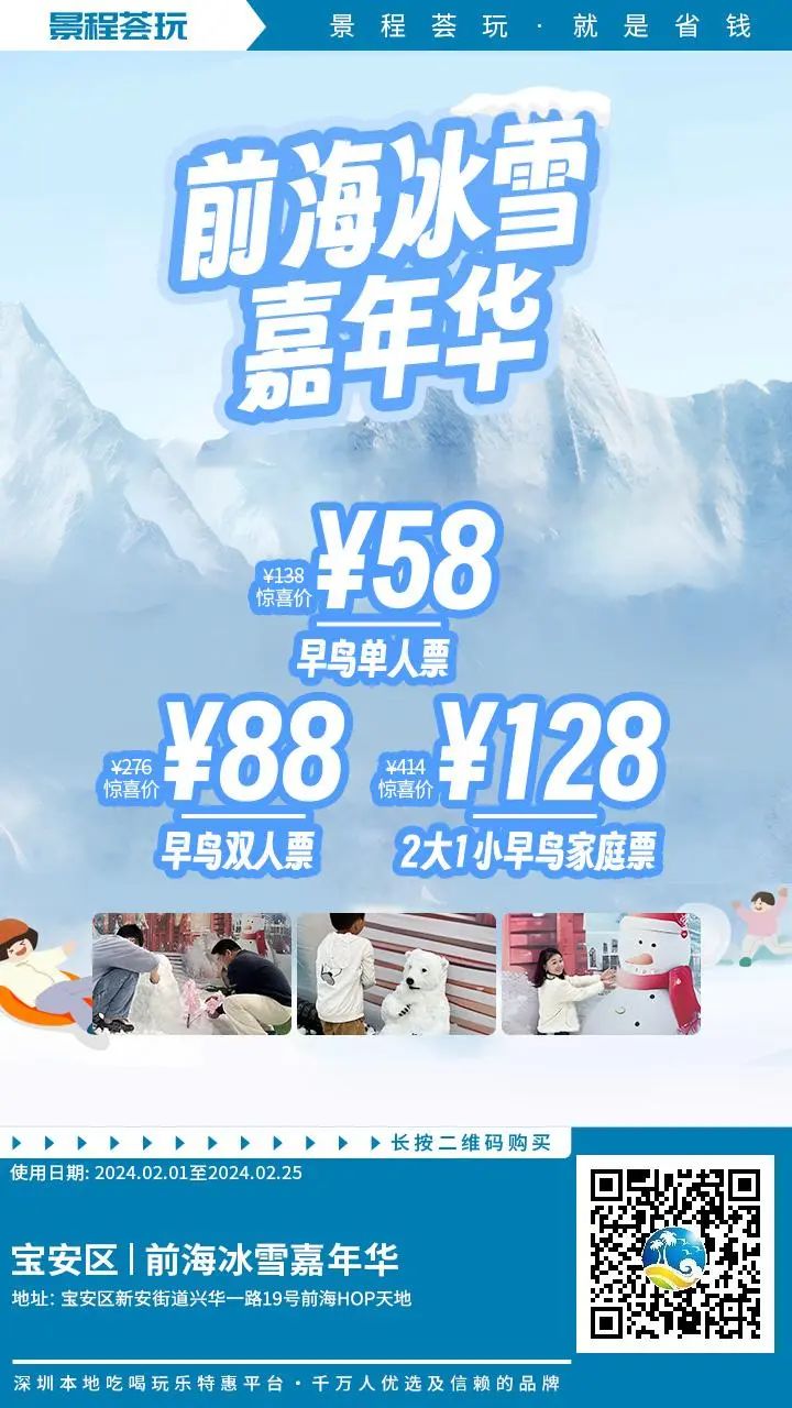 58元抢单/双人/家庭游玩票!深圳第①个室外真雪乐园!打雪仗、堆雪人..N多玩法!【前海冰雪嘉年华】