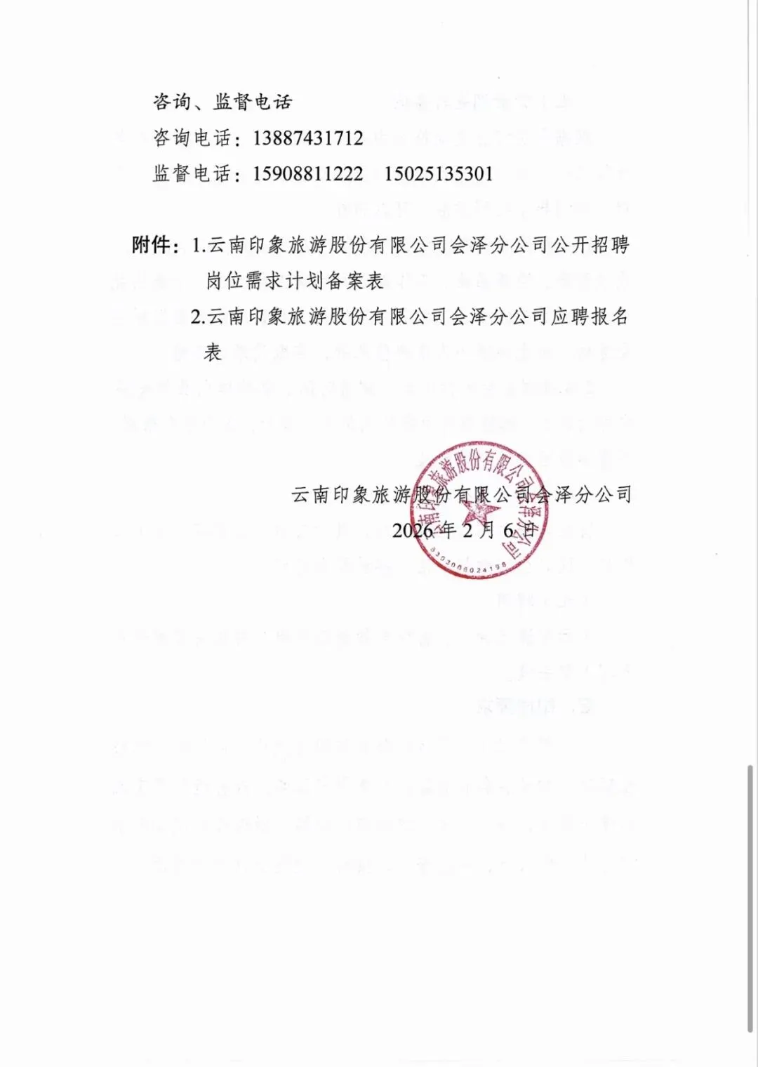 会泽招聘丨云南印象旅游股份有限公司会泽分公司公开招聘公告!01