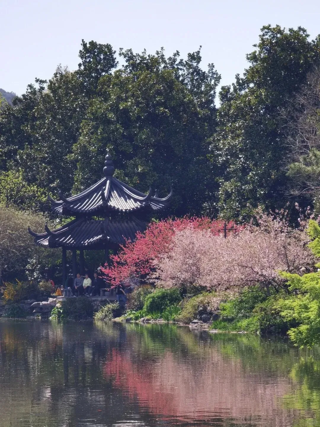 柳枝抽出鹅黄色嫩芽,苏堤两侧桃花渐次绽放。坐在湖边的长椅上,随便一瞥,都是"桃红柳绿"的实景版。
