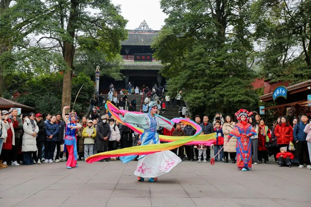 春节期间,都江堰景区及南桥广场将进行快闪演艺,气球达人、川剧变脸、功夫熊猫等非遗表演轮番上阵。精彩不断,欢乐不停。