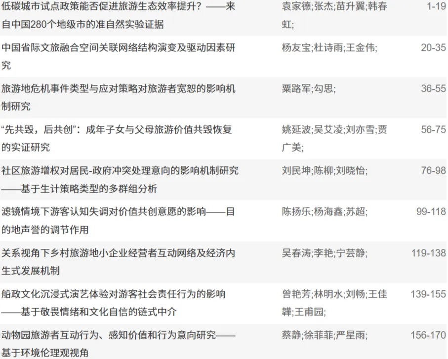 [C刊速递] 《旅游科学》2025年第11期目录