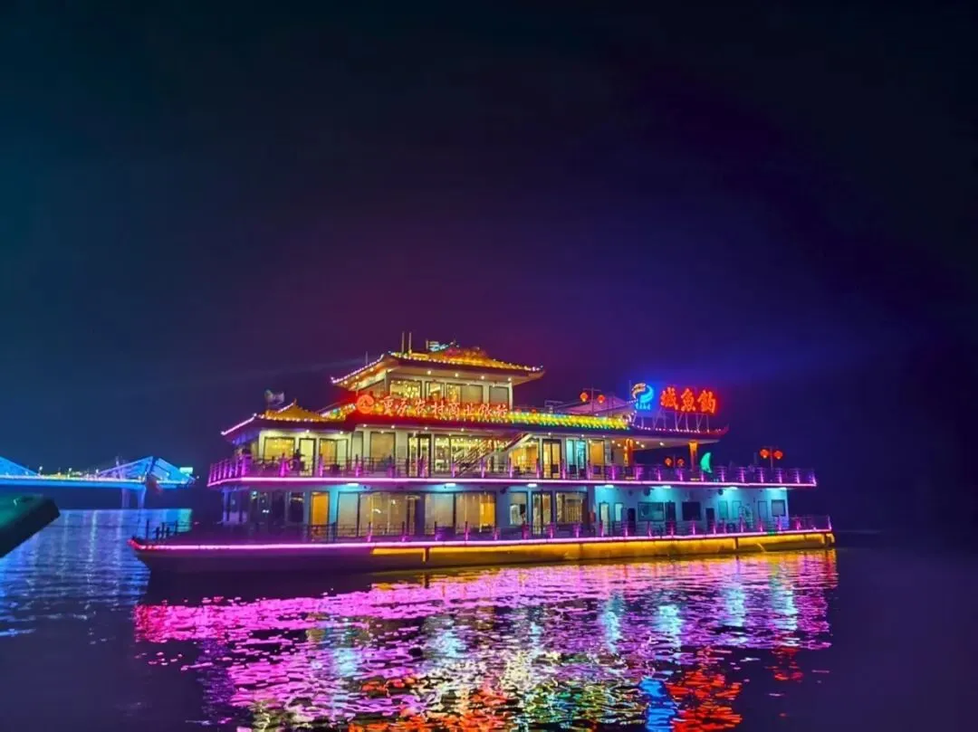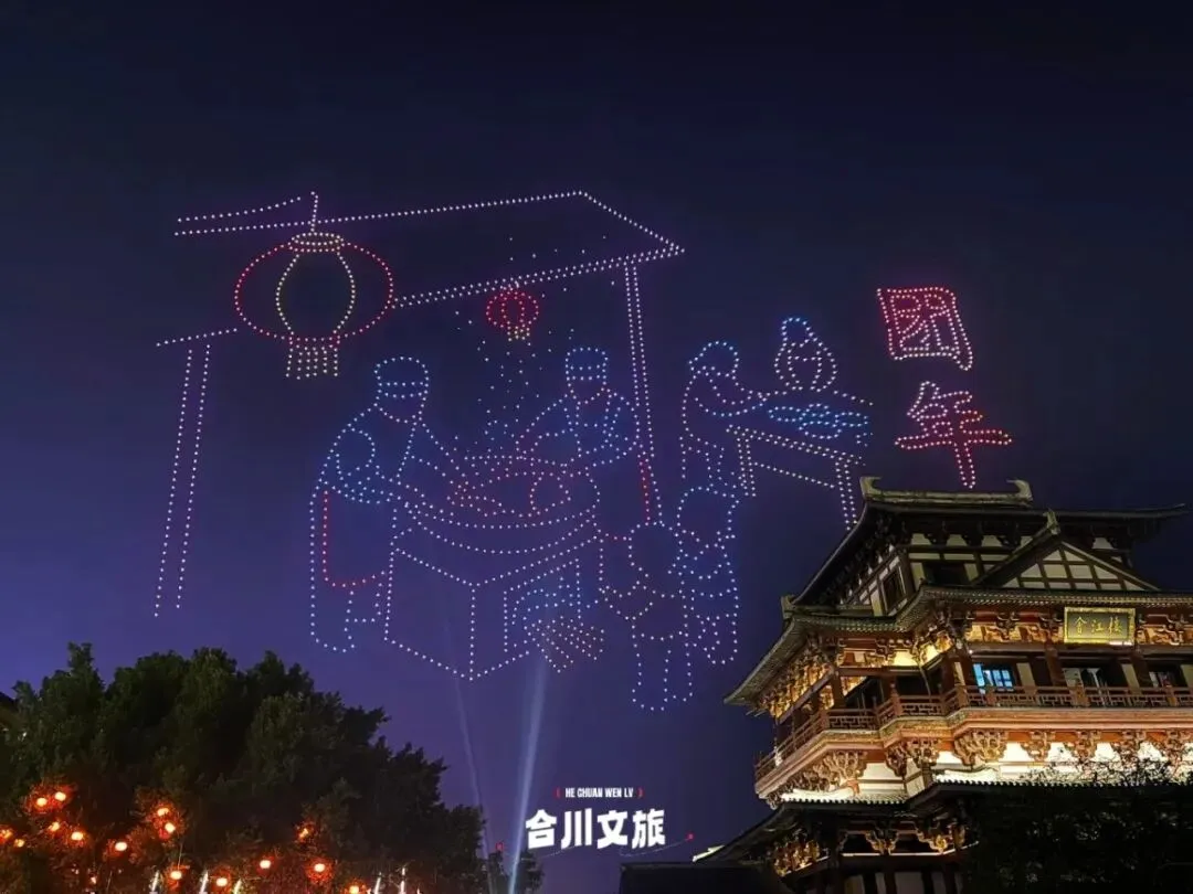 饭后登上“钓鱼城号”游船,两岸灯火倒映水中,流光摇曳。当无人机编队升空,在夜幕中勾画出“钓鱼城”“团年”的璀璨字样时,现代光影与千年历史在此温柔交汇,随手拍都是大片!