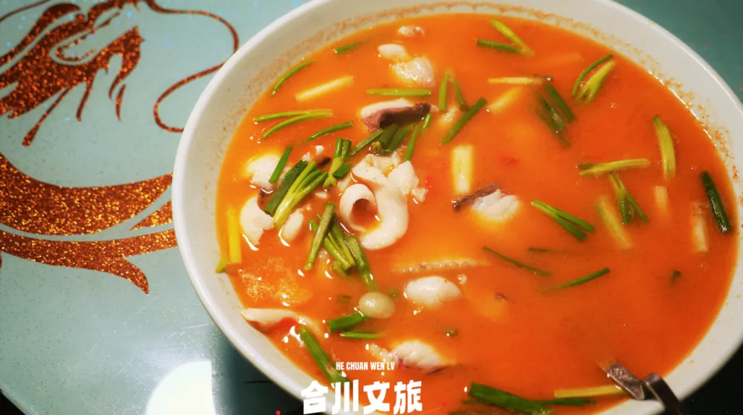 合川的清晨,味道是醒得最早的。钻进本地老牌米粉店,师傅正娴熟地烫粉、浇臊。水粉、宽粉、发粉,口感各有千秋。经典的还属羊肉臊子粉,红汤鲜醇红亮不腻,本地山羊臊子鲜香无膻,手工水粉筋道爽滑,吸溜一口,滋味在舌尖迸发!