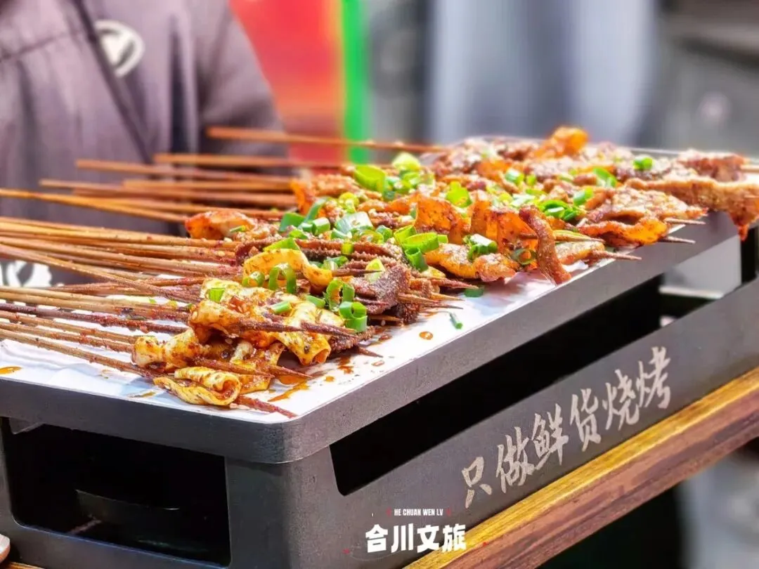 旅程的最后一顿晚餐,当然得尝一尝江湖菜搭配烧烤的完美组合!牙签肉裹着秘制香料,外焦里嫩;盘龙鳝鱼肉质紧实,越嚼越香;羊肉串肥瘦相间,炭火香气扑鼻;烤脑花软嫩入味,鲜辣醇厚;炸小河虾酥脆可口,一口一个停不下来。麻辣鲜香在口中交响,热辣烟火气萦绕舌尖,给三天旅程画上一个火辣辣、香喷喷的圆满句号。