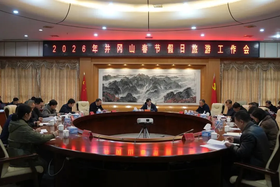 2月11日,2026年井冈山春节假日旅游工作会议召开。井冈山管理局局长、井冈山市政府市长毛江虎等局市相关领导出席会议。