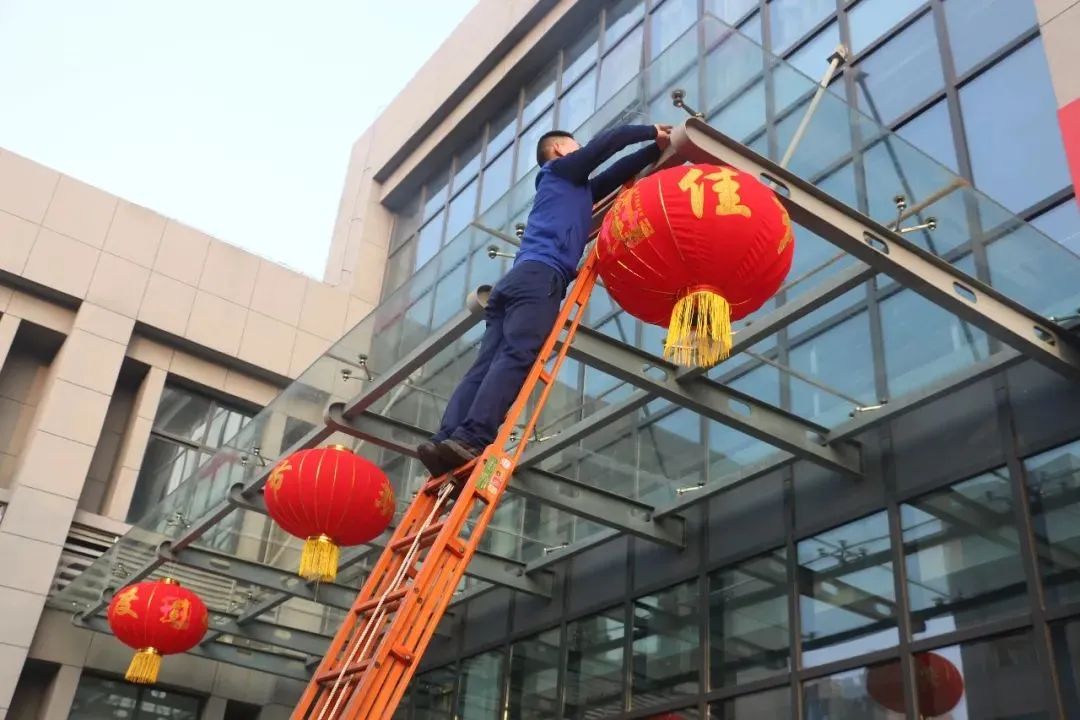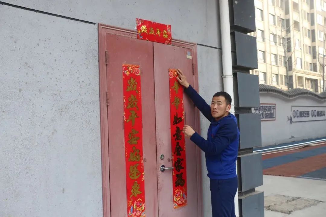 贴春联迎新年,浓厚节日氛围。大队购置了红灯笼、对联等节日用品,发动全体消防员对营区进行“梳妆打扮”,在大家一番精心的布置下,营区内顿时美了起来,亮了起来,让欢乐的营房处处透着年味,营造出欢快、和谐的“大家庭”气氛。