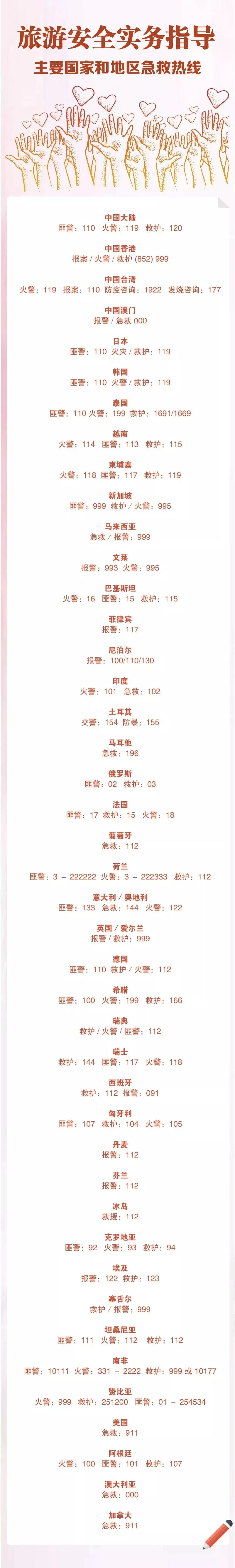 2、主要国家和地区急救热线