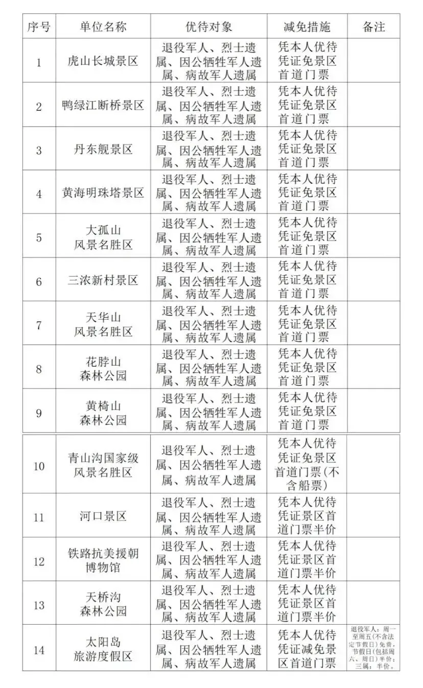 退役军人出行、游园、看演出等优惠力度