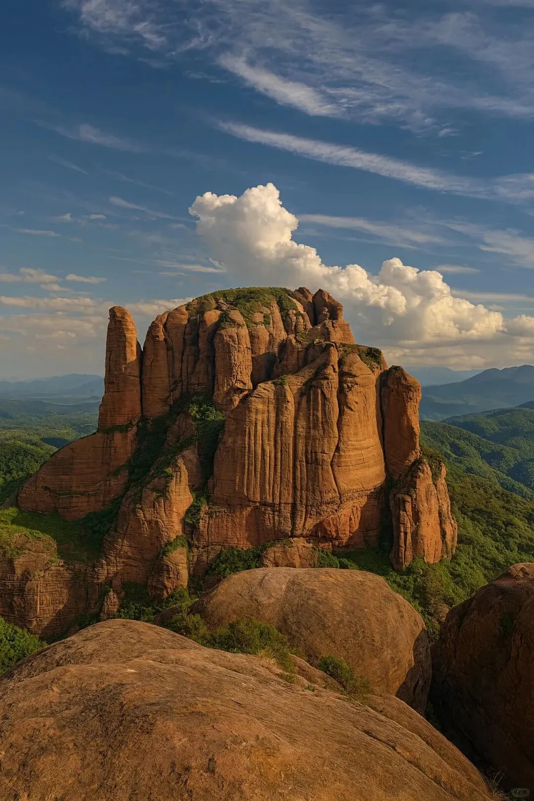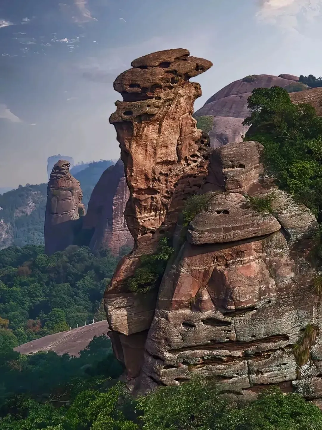 它是世界自然遗产、5A级景区,主打丹霞地貌,满山石头都像乌龟,“无山不龟、无石不龟”,徐霞客当年都夸它灵秀。