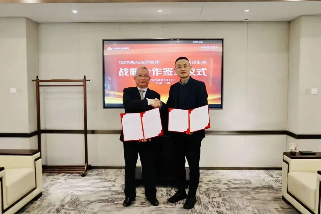 2 月12日,绿地酒店旅游与京东政企业务在上海正式签署战略合作协议。此次双方强强联手,依托绿地酒店深耕行业二十余载的规模及运营优势与京东政企业务的数智供应链能力,深度整合资源、创新合作模式,不仅为绿地酒店轻资产战略落地注入新动能,更率先开辟酒店场景新零售第二增长曲线,为酒店行业突破内卷、实现高质量发展树立全新标杆。