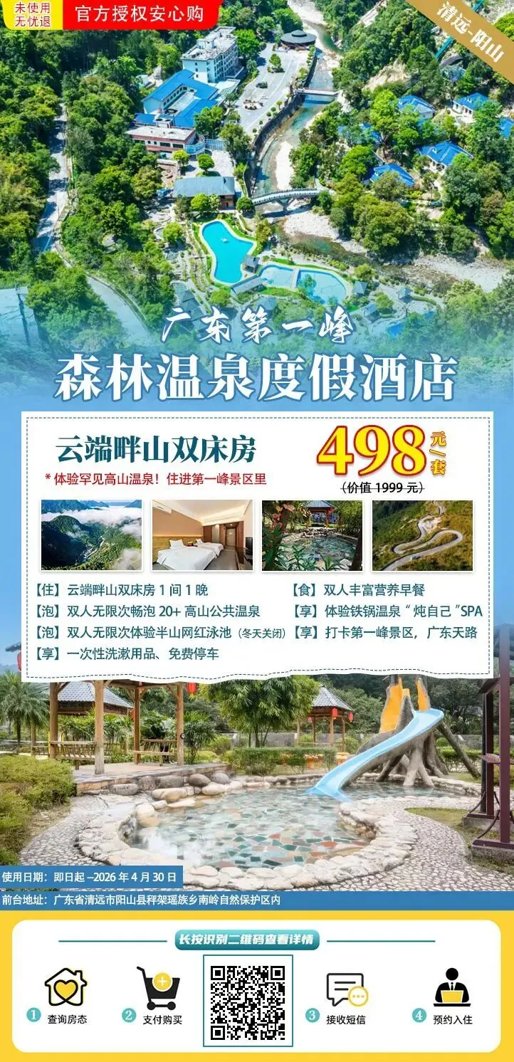 【清远阳山·广东第一峰景区】“广东天路”800个弯道才到达的森林温泉度假,冬天会下雪的地方,无限泡20+高山温泉,体验铁锅SPA!