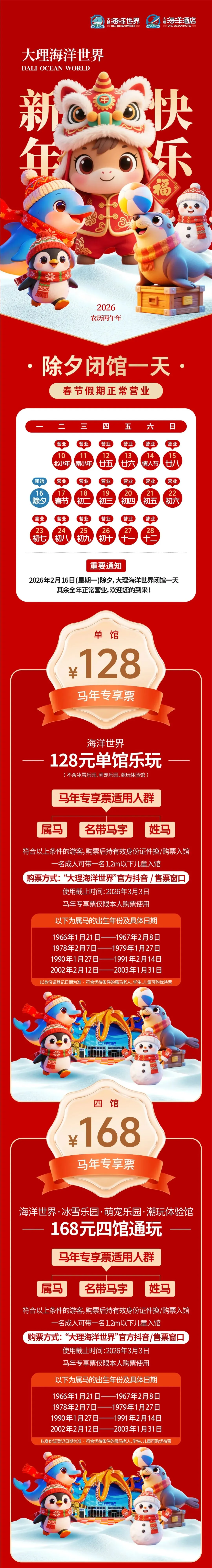 入园游客可现场观看非遗技艺表演、品尝大理农特产品,同时购买新春许愿卡均可获赠新春马挂件一个,购买参加幸运“刮刮乐”、“叠叠乐、古诗词接龙”等活动即可获赠新春伴手礼一份。