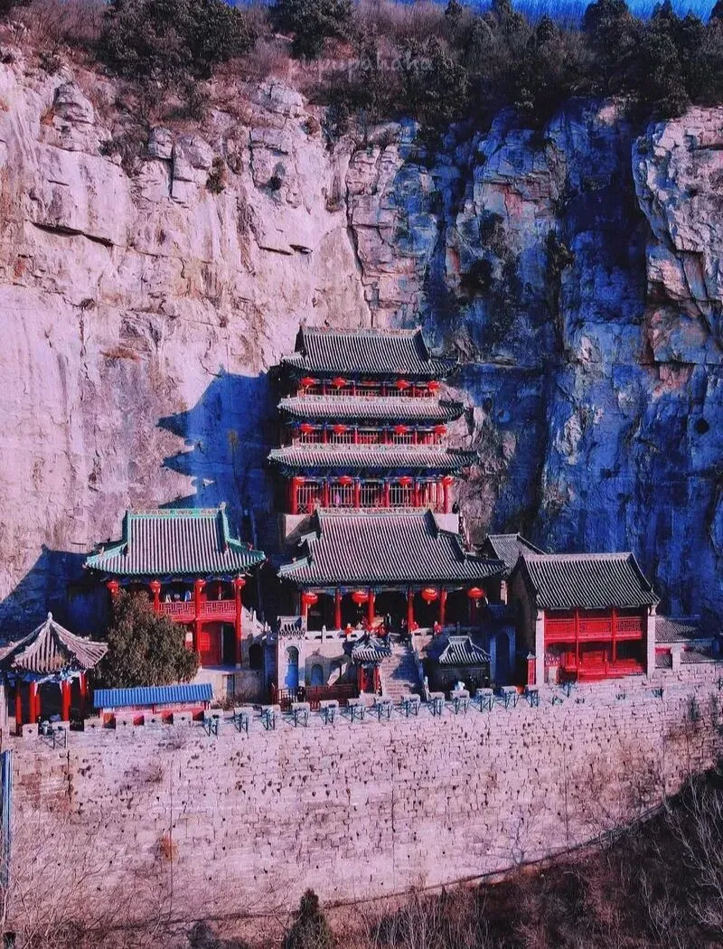 以悬空式娲皇阁闻名,被誉为“活楼吊庙”,拥有国内面积最大的北齐摩崖刻经群。