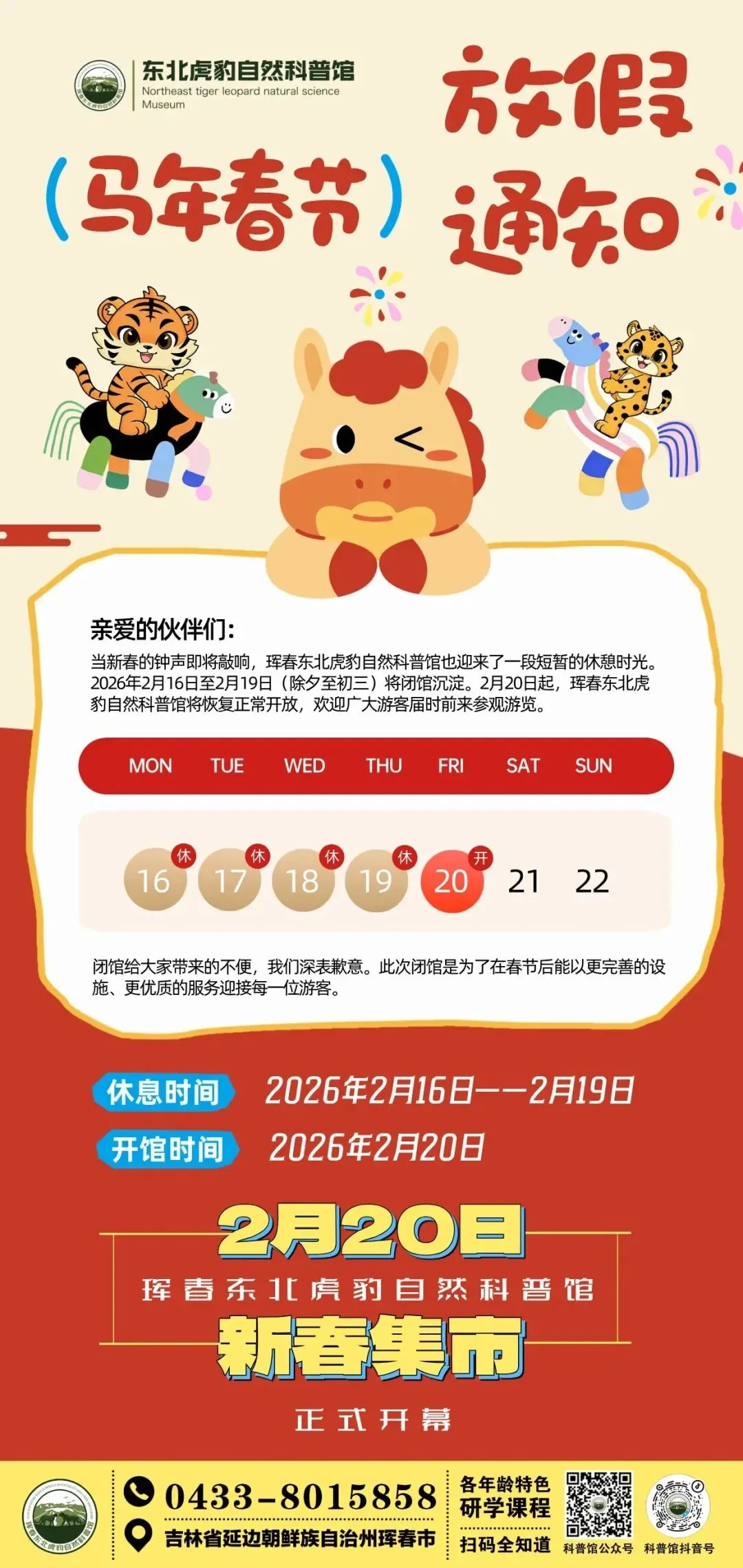 春节期间,除夕至初二(2月16日—2月18日)闭馆三天,