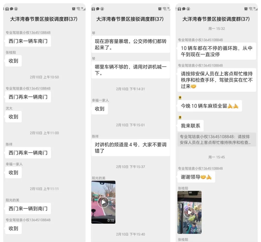“西门来一辆车到南门……”“烟花秀已结束,车辆做好准备……”全体驾驶员绷紧弦、拉满弓、铆足劲,通过微信工作群、对讲机实时共享景区交通秩序、客流分布情况等信息,遇到大客流高峰期时,自发调整车辆运力,充分发挥团结协作和突击奉献精神,努力让每一位游客乘兴而来、满意而归。