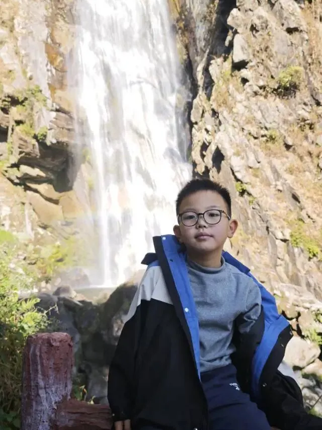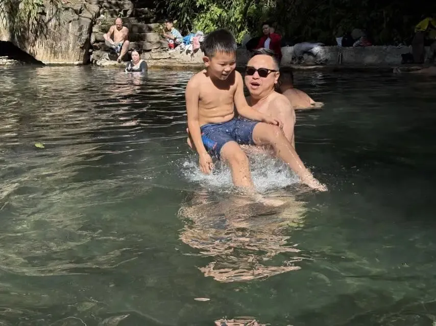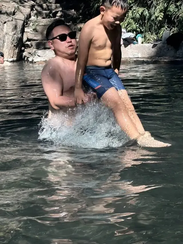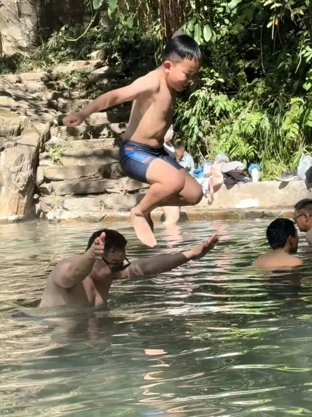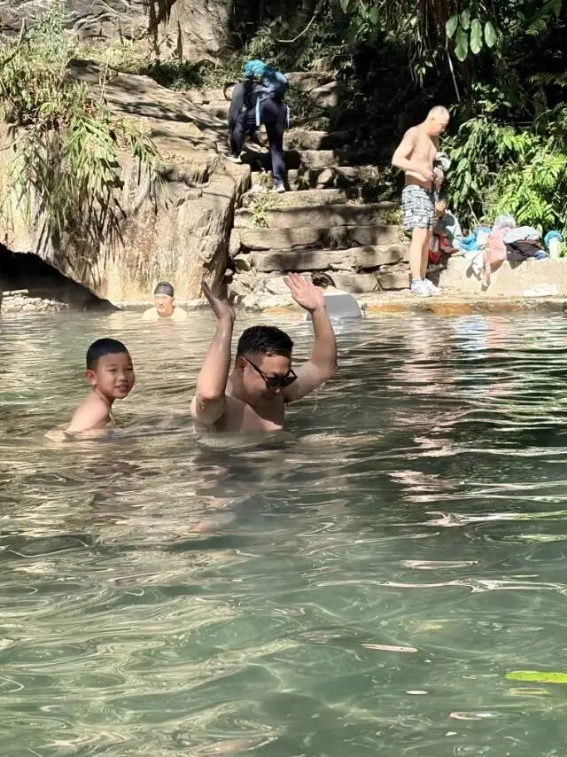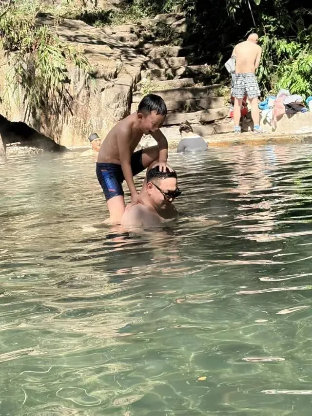 到了底部就可以看到一谭野温泉♨️,我和儿子小泡了一会。