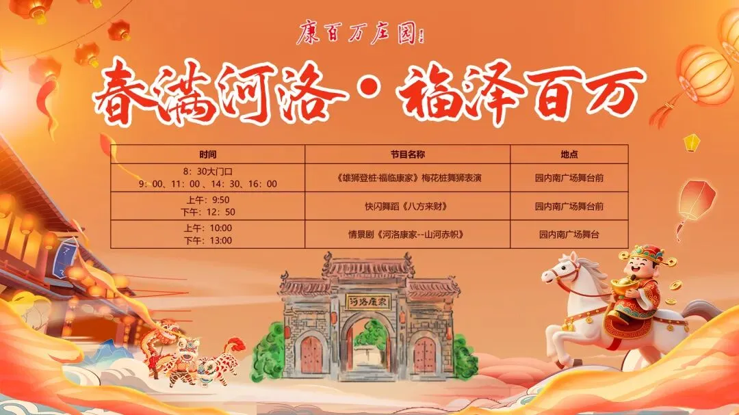 快闪+情景剧双buff✨ 每日上下午各一场《八方来财》快闪沾财气,互动歌舞情景剧《河洛康家--山河赤帜》演绎豫商传奇,藏家族传承与家国情怀,沉浸式解锁康家百年与新春暖意~