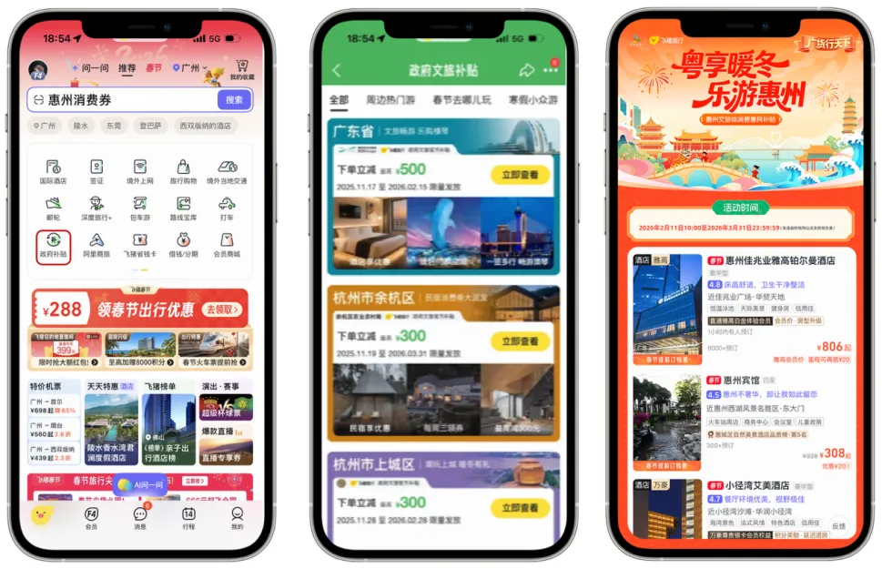 活动期间,公众通过飞猪旅行APP,点击政府补贴频道,进入“惠州消费券”专题页面参与活动。