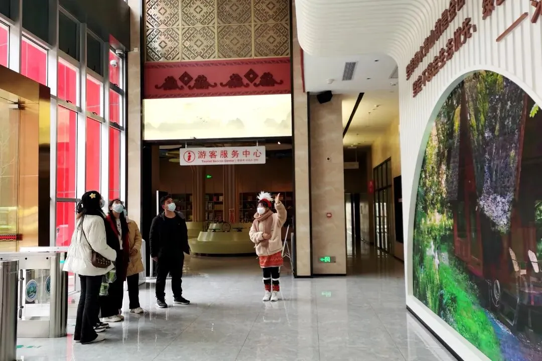 文明旅游,文明讲解,瑶族博物馆的志愿者为游客耐心讲解。