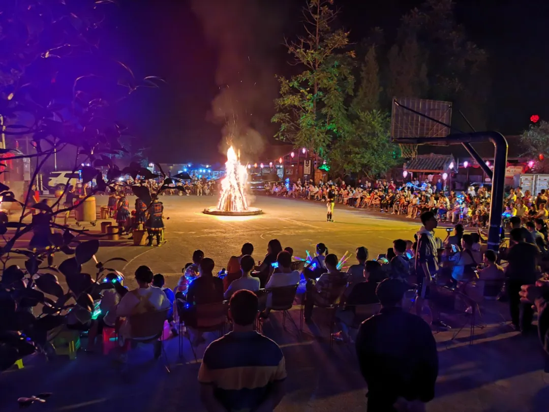 众多游客在歌娅思谷参与白裤瑶篝火晚会