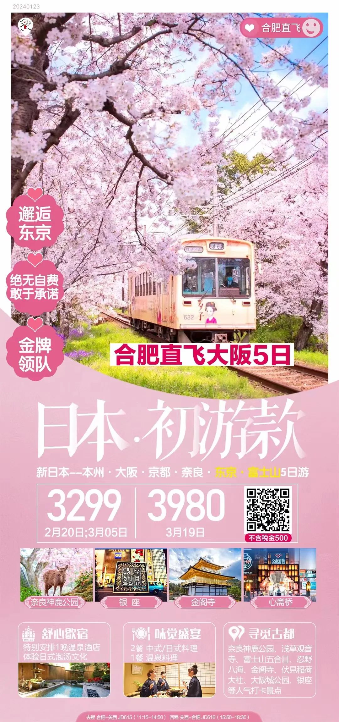 合作之南京/合肥直飞日本的跟团游、半自助游一览(樱花季机票可订)