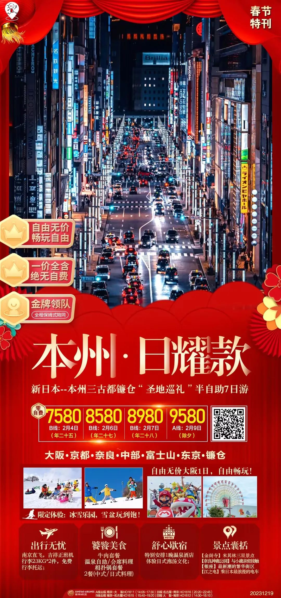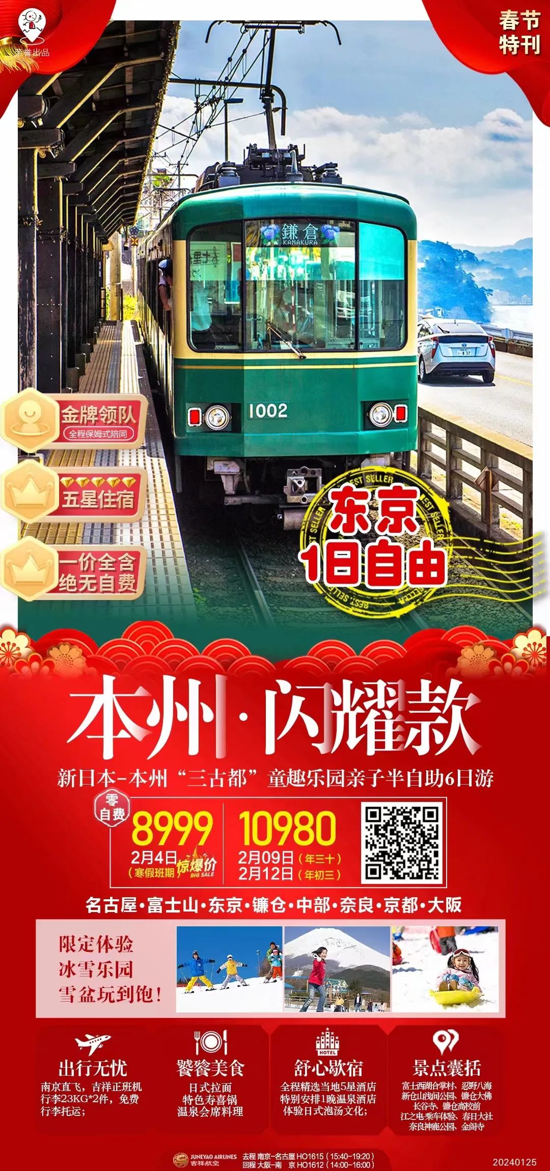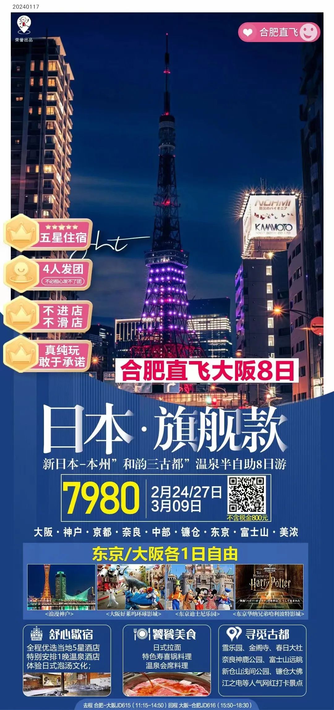 旗舰:本州7天,无领队,东京/大阪各一日自由