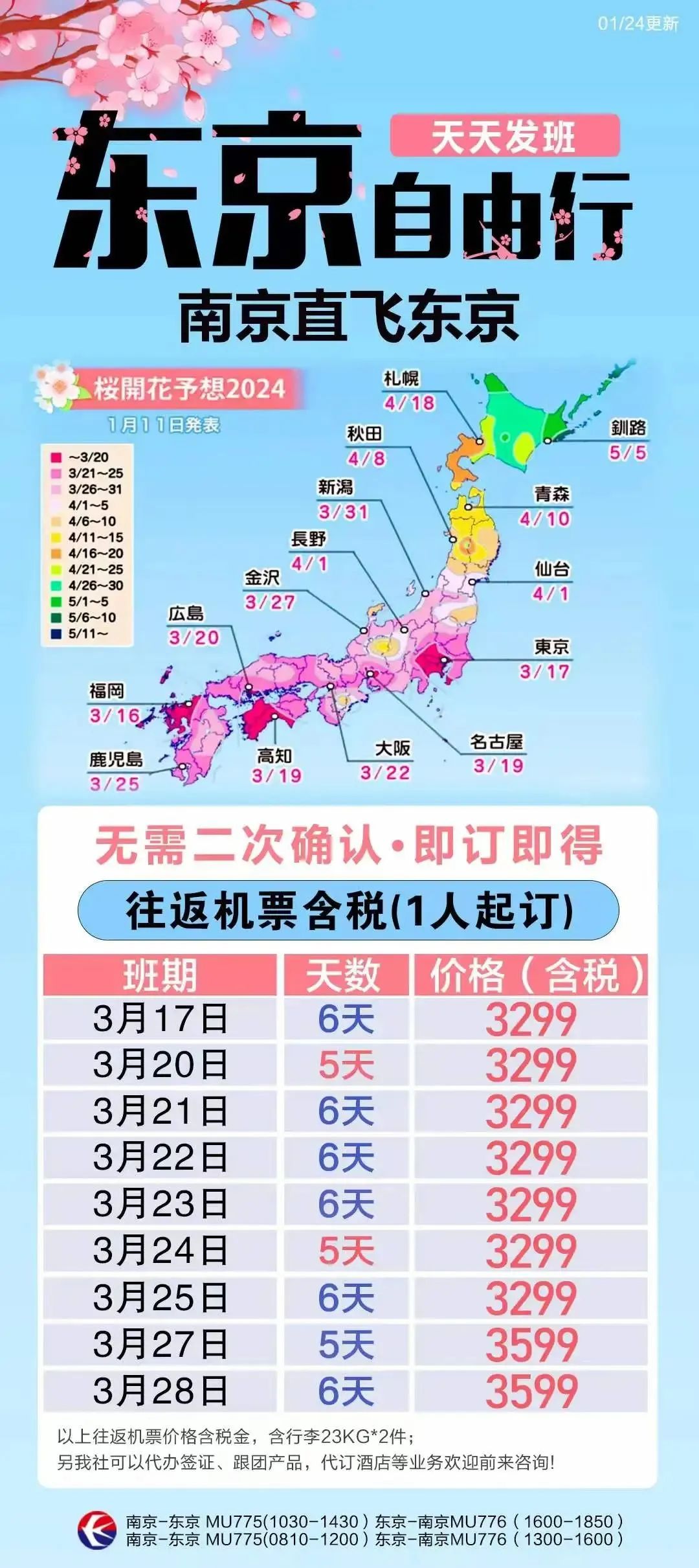 南京直飞东京的樱花期单机票