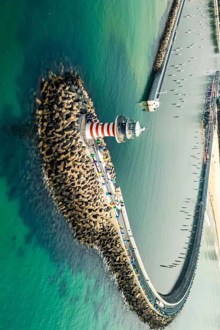 灯塔孤独地立在礁石上,像走进了某部冷门文艺片的片场 。