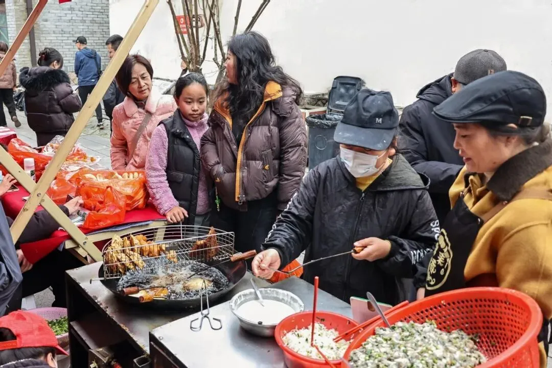 在化龙街的“非遗过大年”区域,汇聚了非遗手工制作体验、非遗产品展销和地道非遗美食。市民们不仅可以近距离观赏、购买精美的非遗工艺品,还能品尝到记忆中的传统味道,让非遗文化在互动与品味中“活”了起来。