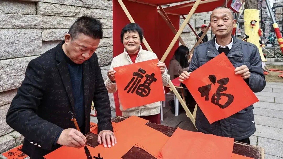 过年自然少不了送福纳祥。在化龙街的“金马送福” 活动现场,书法名家挥毫泼墨,为市民免费书写春联和“福”字。一副副手写春联传递着最诚挚的祝福,一旁的连江特色文创与潮玩产品也吸引着年轻游客的目光,传统与现代在此完美交融。