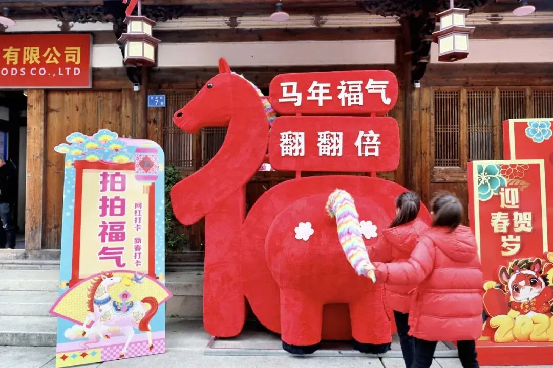 而街区里设置的“拍拍马屁” 网红打卡点和装扮着温暖毛线彩衣的“树树生花” 魁龙古树,则成为最受欢迎的拍照背景,记录下了无数张幸福的笑脸,成为刷爆朋友圈的春节记忆。