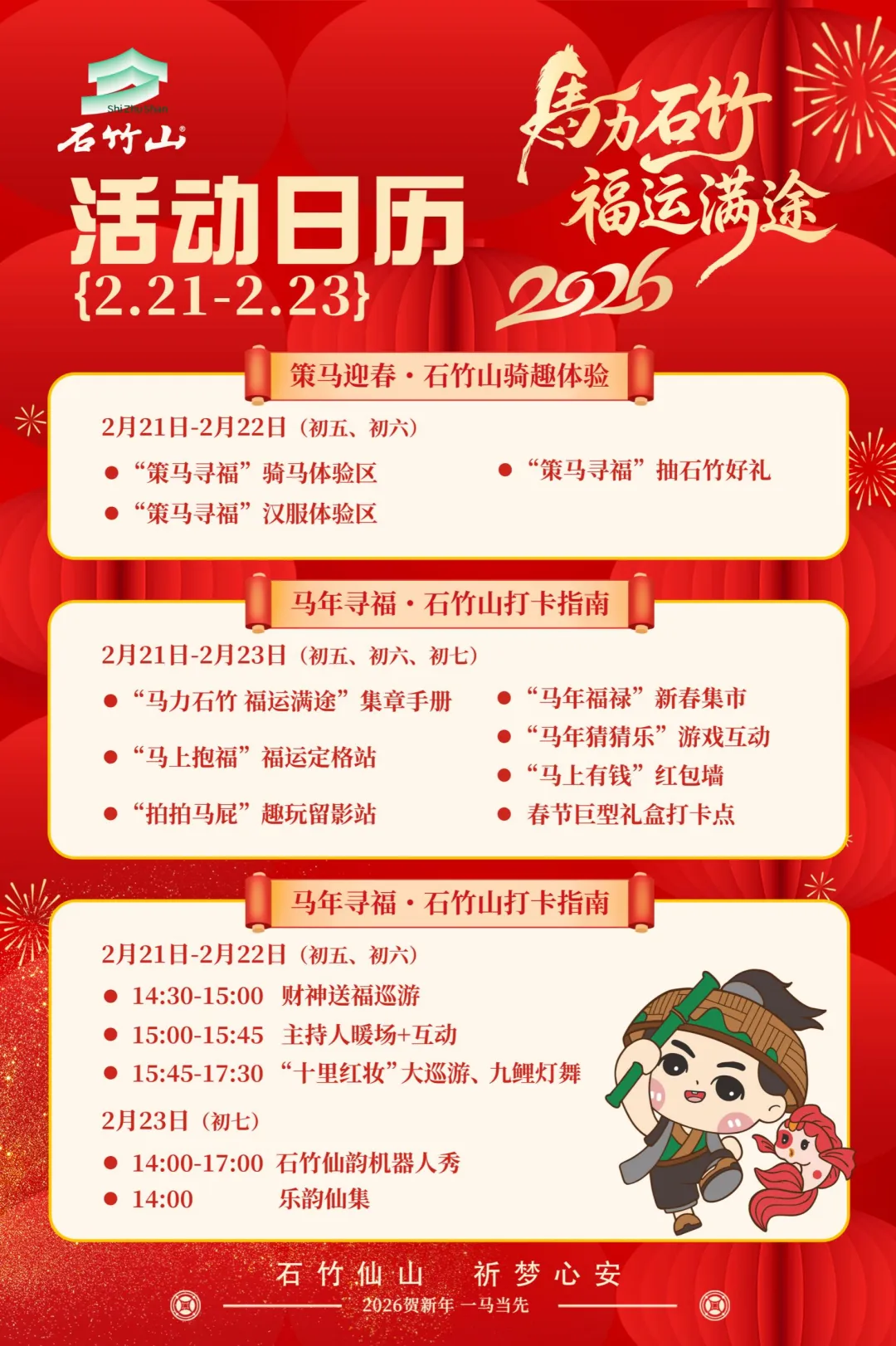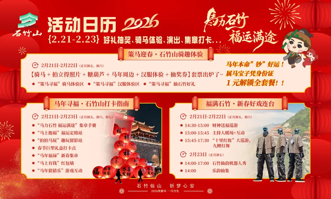 值得一提的是,今年石竹山景区还特别推出“马年特惠”活动。属马的市民可用1元的惊喜价格购买价值98元新春套票,涵盖骑马体验、妆造拍照、马年挂件领取等服务,让游客在祈福登高之余,多一份趣味参与。