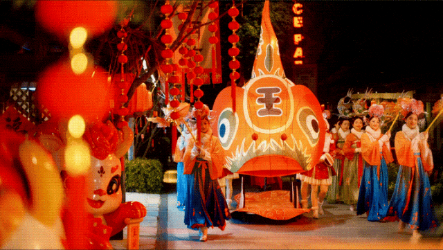 鱼灯成行,如星河落地盏盏流光,愿望亮晶晶灯影摇曳处,都是人间烟火气