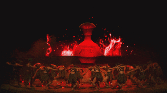 喷火绝技,气吞山河火刀破空,斩尽诸邪火立方旋转,光影迷离火壶倾洒,星火如雨