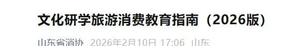 近日山东省消协发布《文化研学旅游消费教育指南(2026版)》