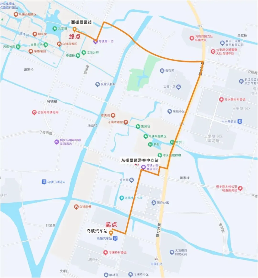 2.停靠站点乌镇汽车站、东栅景区游客中心、西栅景区